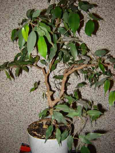 Witam mam problem poniewaz odziedziczyłem po Ś.P. Babci Ficusa Benjamina miala go ok 6 lat i mowila ze to jej bonsai. Ostanio zaczelem interesowac sie ta sztuka i pomyslalem ze nie warto zaniedbac tej rosliki (chodz i tak jest zaniedbana) i mam pytanie jak ja pielegnowac aby wygladala jak bonsai ?? w zalaczniku dodaje zdjecia. Co mam zrobic jak pociać czy drutowac ja czy nie. Roslina ma ok 40 cm, w doniczce na moje oko ma wsypana ziemie uniewersalna do kwiatów