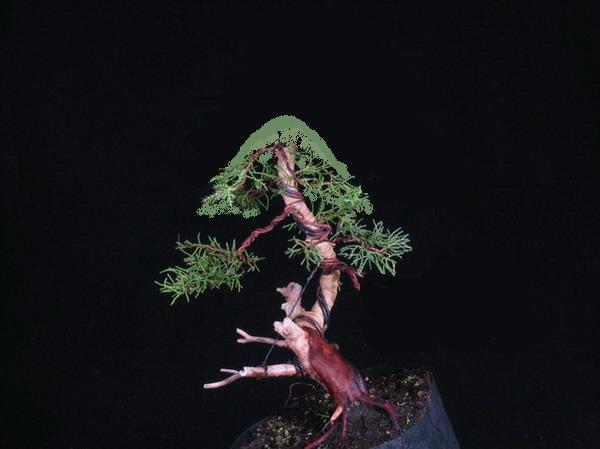Kolejna rzecz to nebari. Jest już bardzo fajne ale korzenie idą mocno w dół od frontu. Zamierzasz Romanie zastosować jakieś odciągi podczas przesadzania, żeby je wypoziomować? Może jest to dobry materiał do posadzenia na skale?