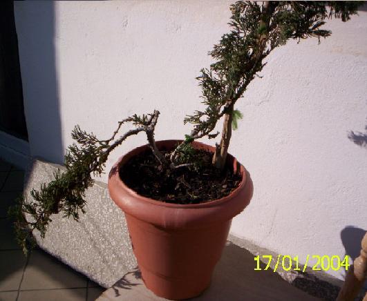 Zaczynam pracę nad tym jałowcem. Jest to odmiana płożąca i rósł sobie do tej pory w ogrodzie. Przesadziłem go do tymczasowej doniczki i zaczynam przycinać i kształtować. Będę zobowiązany za rady i ciekawe pomysły.